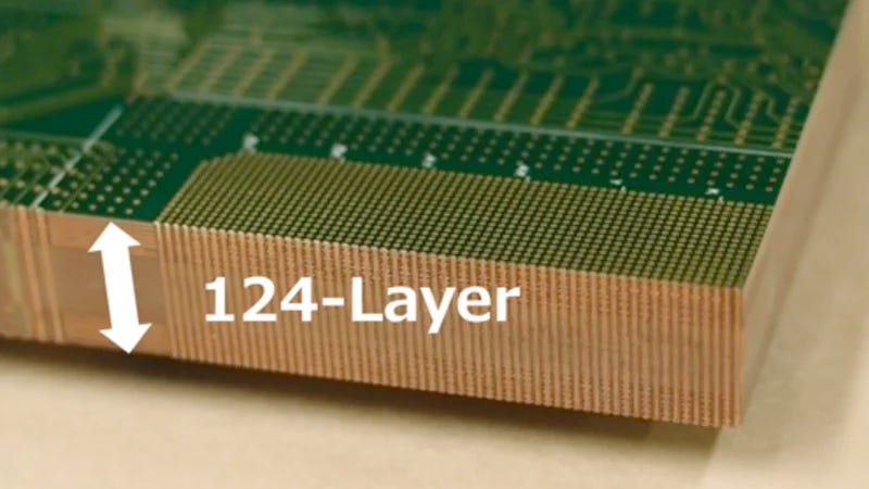 In the world of PCB stackups, a new record has been set with a 124-layer board - the highest commercial layer count achieved without exceeding the standard 7.6 mm thickness. To put that in perspective: consumer devices usually land between 2 and 4 layers, enough to handle basic routing and simple power distribution. Industrial and networking gear bump that to around 6–12 layers, balancing signal integrity, noise control, and multiple power domains. High-performance boards, like those in AI accelerators, aerospace electronics, or wafer-level semiconductor testers, regularly exceed 20 layers, where the PCB itself is integral to electrical performance, thermal management, and ultra-dense routing requirements.