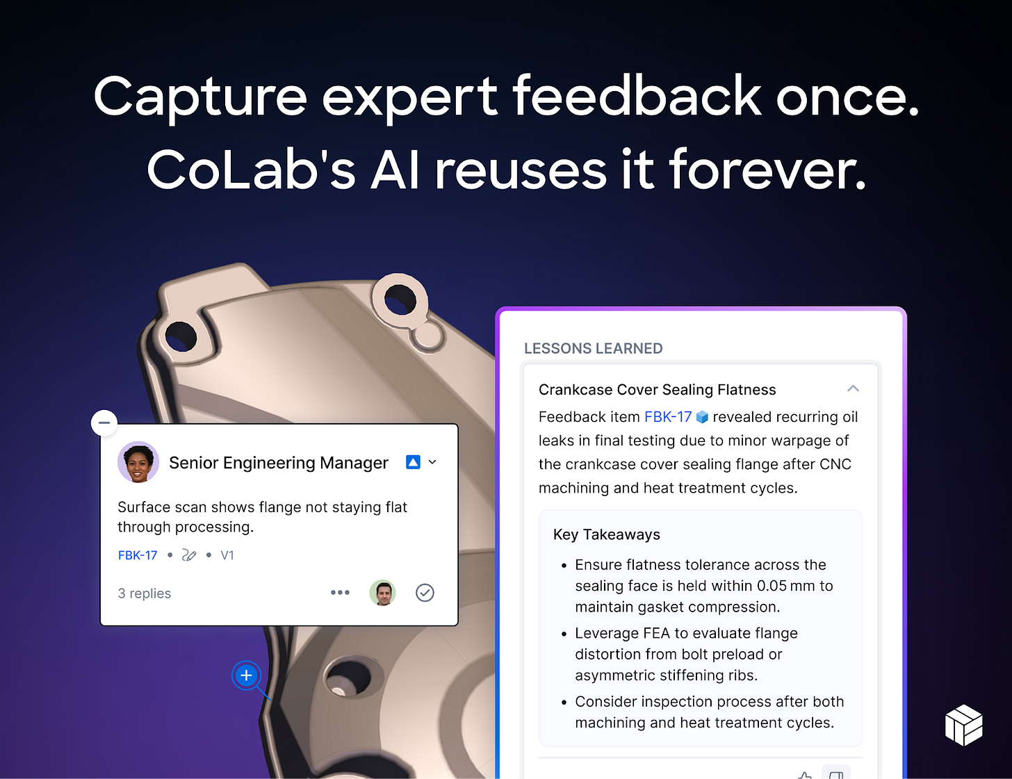 When past decisions aren’t documented, your team ends up making the same mistakes and duplicating work. With CoLab AI, you upload a model or drawing and AI surfaces lessons learned from past reviews. Those lessons include a link to exactly where and when on the CAD or drawing that feedback was left. So, your team sees why the design is the way it is. See CoLab AI in action →